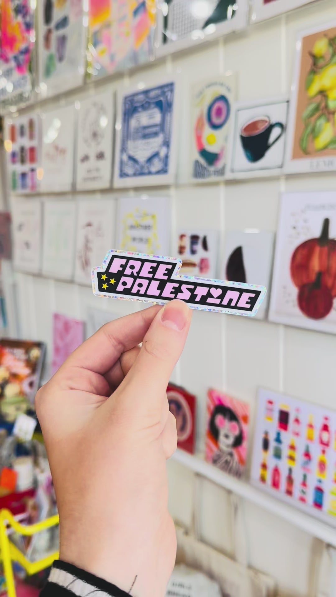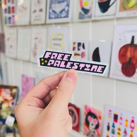 Sugar, spice, and everything nice.... this Free Palestine sticker features a glittery border with a glossy finish! Sticker measures 3.7"x1.2".