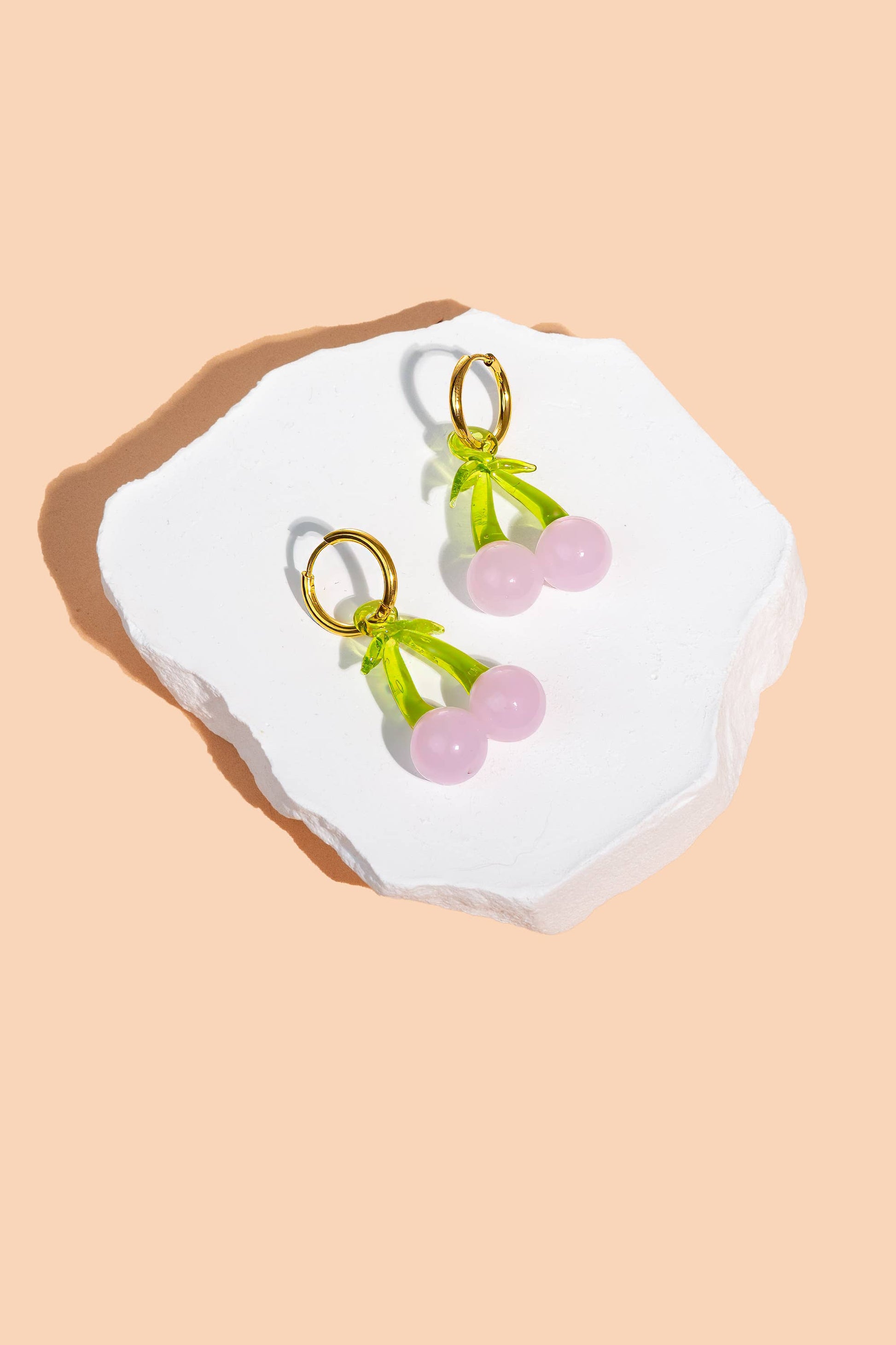 * 18k gold plated hoop over stainless steel * hand made murano glass cherries * water proof * nickel / lead free * produced in the USA with materials ethically sourced. Peter and June -