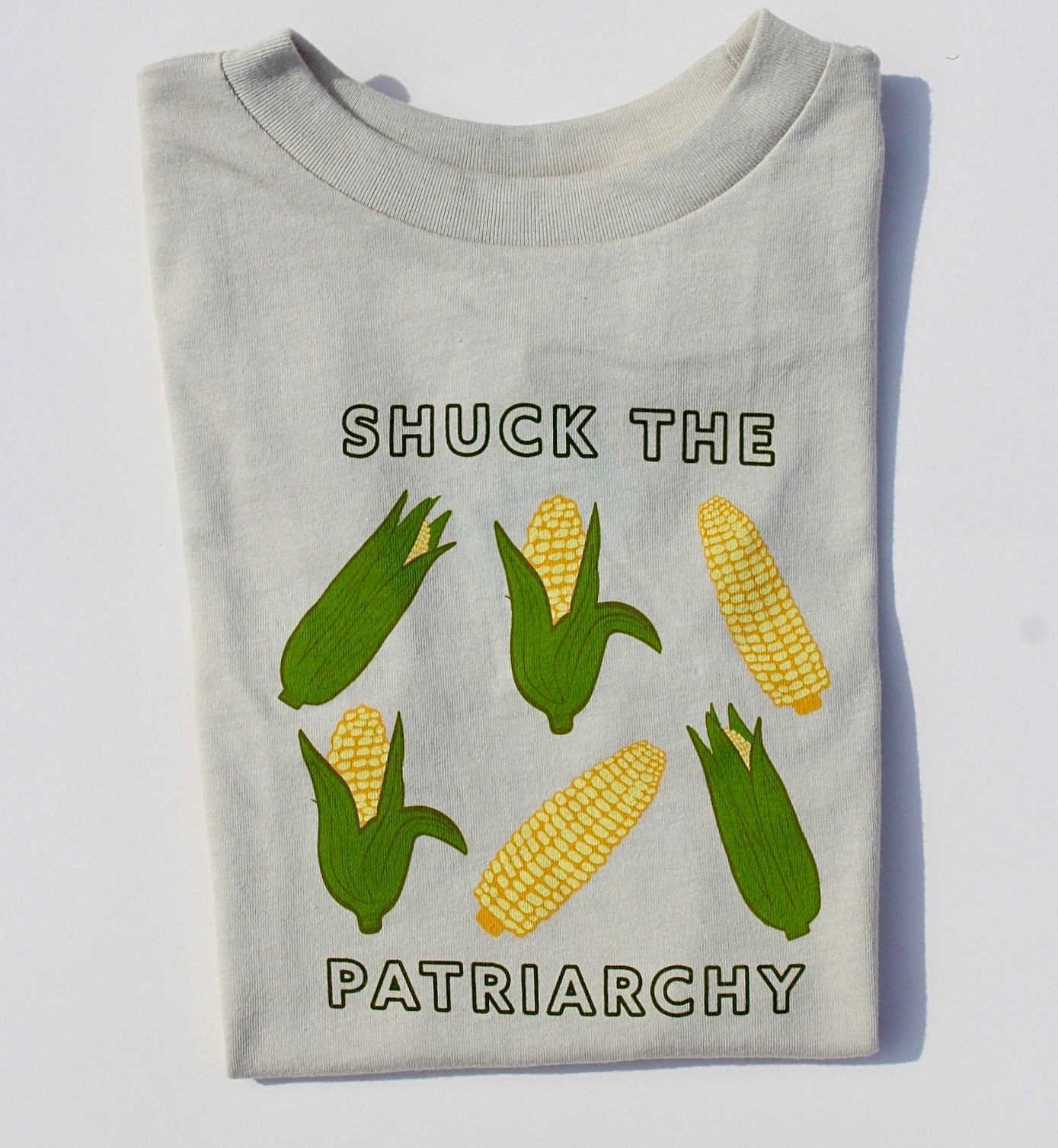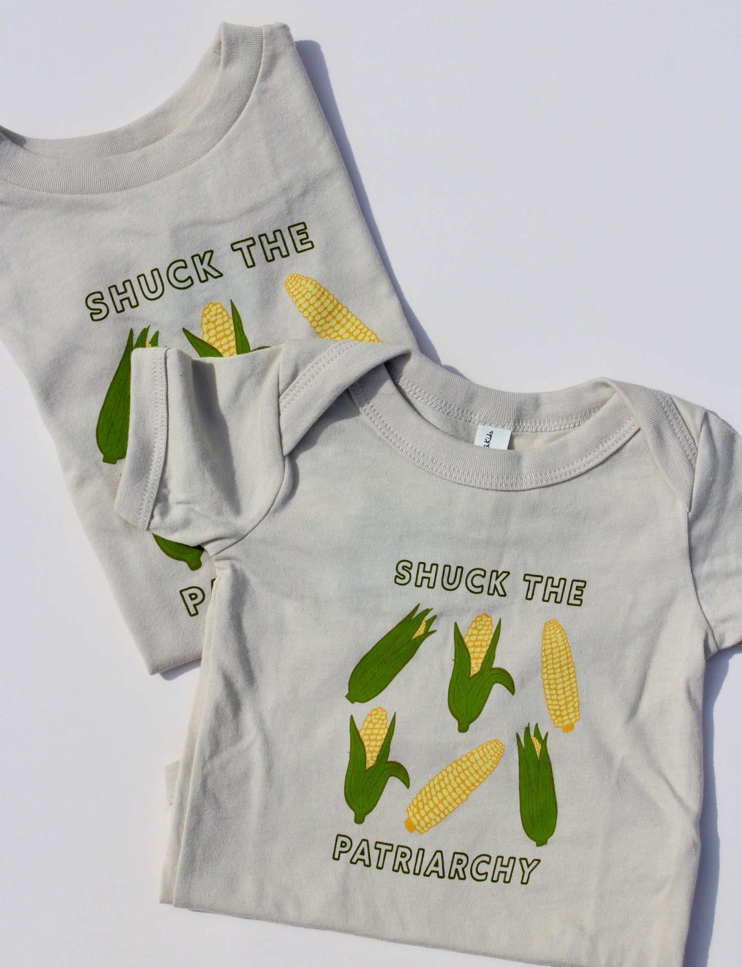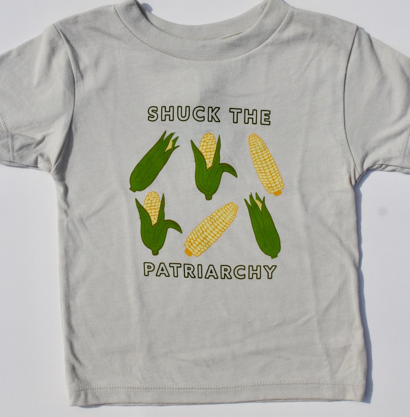 It's cute because it's corny! Corn loving parents will go wild for the Shuck the Patriarchy Corn Toddler T-shirt.