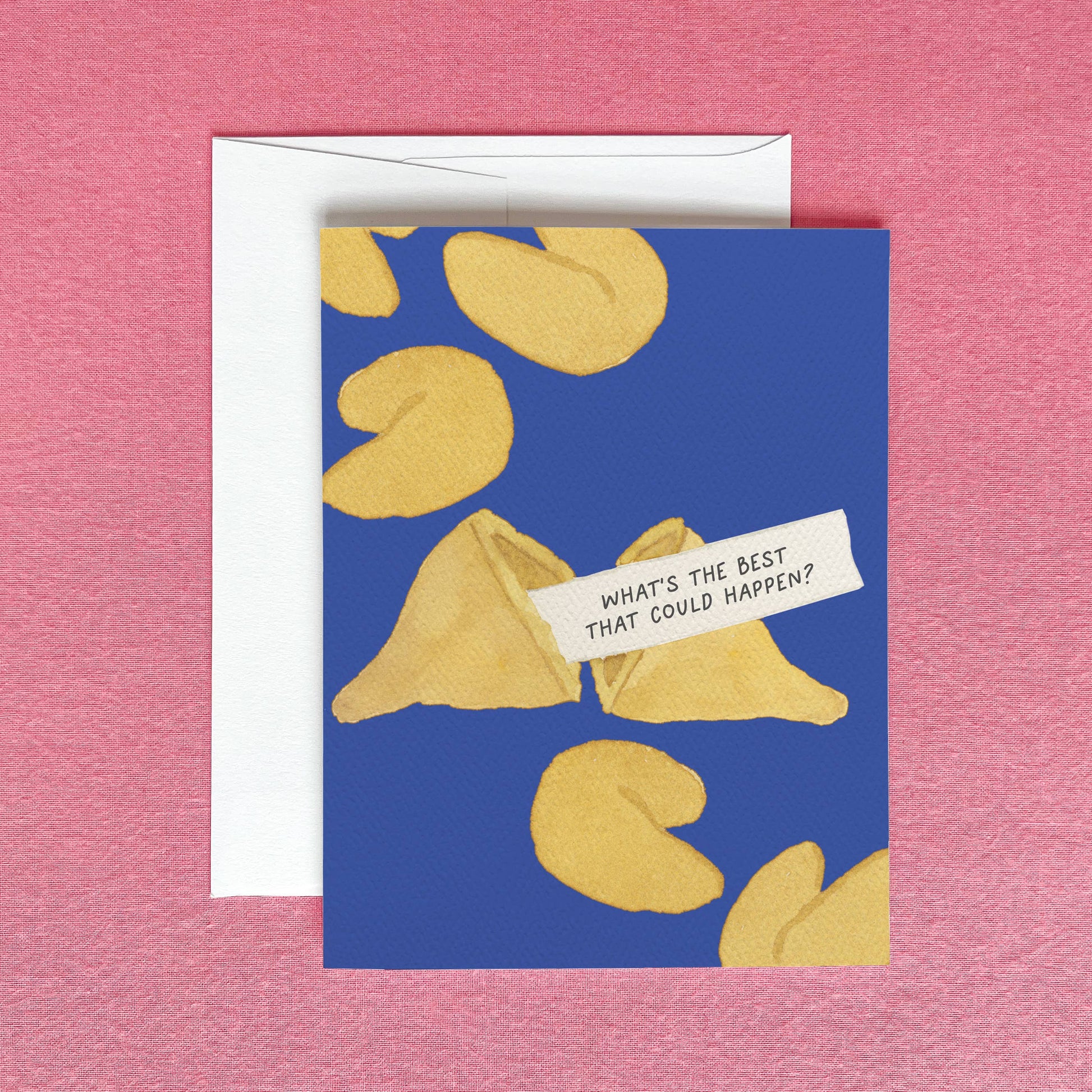 For the one who needs a little courage (and a hopeful twist). This encouragement card features watercolor fortune cookies with the phrase “What’s the best that could happen?” on one of the fortunes. Playful yet uplifting, it’s the perfect way to cheer on a friend chasing a dream, facing change, or stepping into the unknown. Created from an original watercolor painting, it’s a card that delivers encouragement with optimism—and a touch of whimsy.