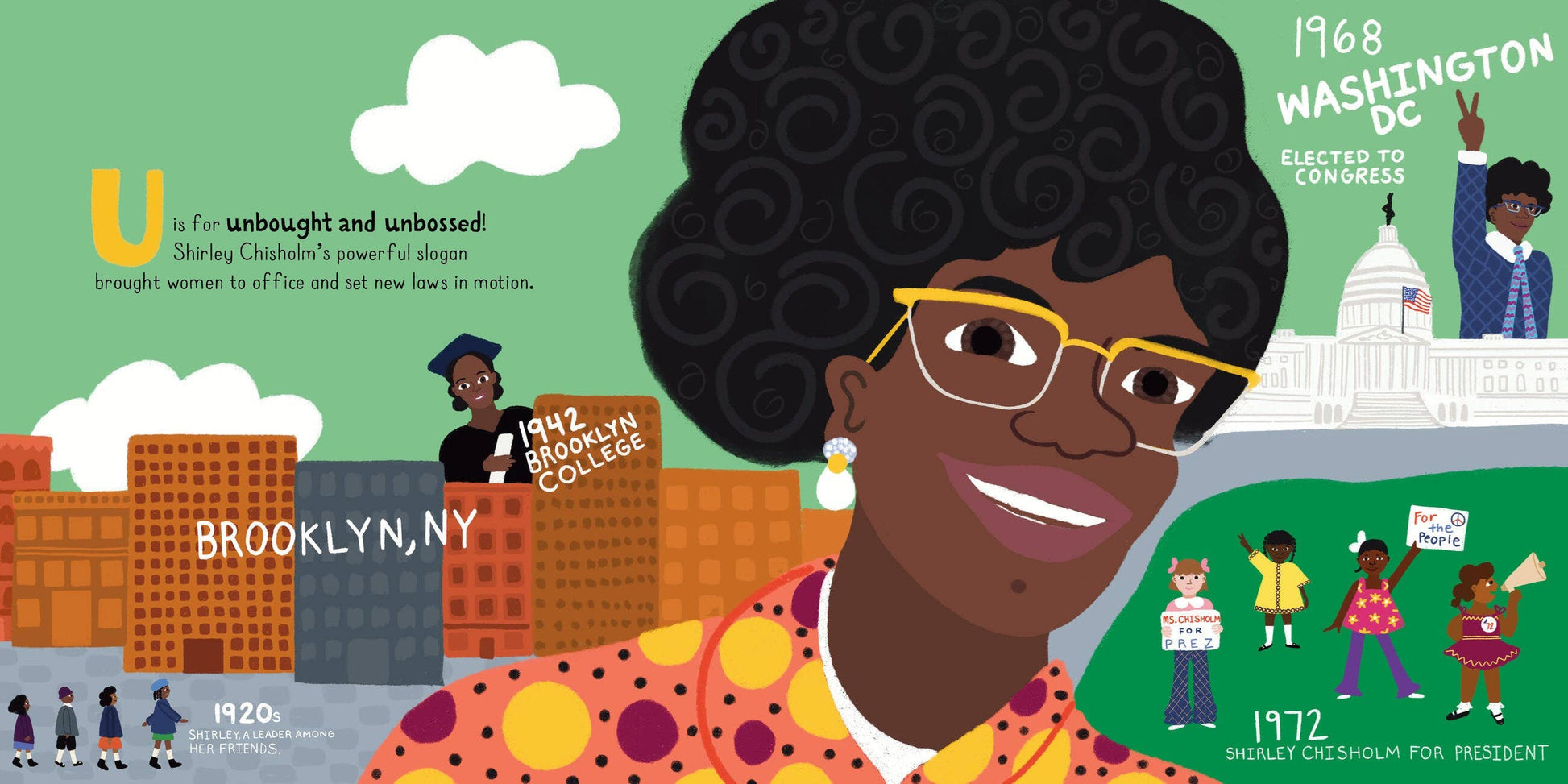 In a beautiful picture book brimming with G for Groundbreaking women, National Book Award nominee Rio Cortez and illustrator Lauren Semmer celebrate all the joys, challenges, and historic forward movement of women’s history in the United States, with a special focus on the Black women, brown women, transwomen, and others who make change happen. This is a book about Artists, Activists and Allies, about Civil Rights and Choice, about Freedom Fighters, Headliners, Labor -- and Librarians! It’s about historic moments—Kamala Harris being sworn in as the first African-American and first Asian-American Vice President of the United States; Title IX passing through Congress; Seneca Falls, where the first women’s rights convention was held; the Riot Grrrls movement