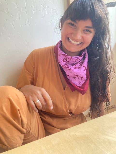 This gorgeous, high-quality bandana has so many uses: wear it as a face covering, use it as wrapping paper, tie it in your hair, or hang it as art!