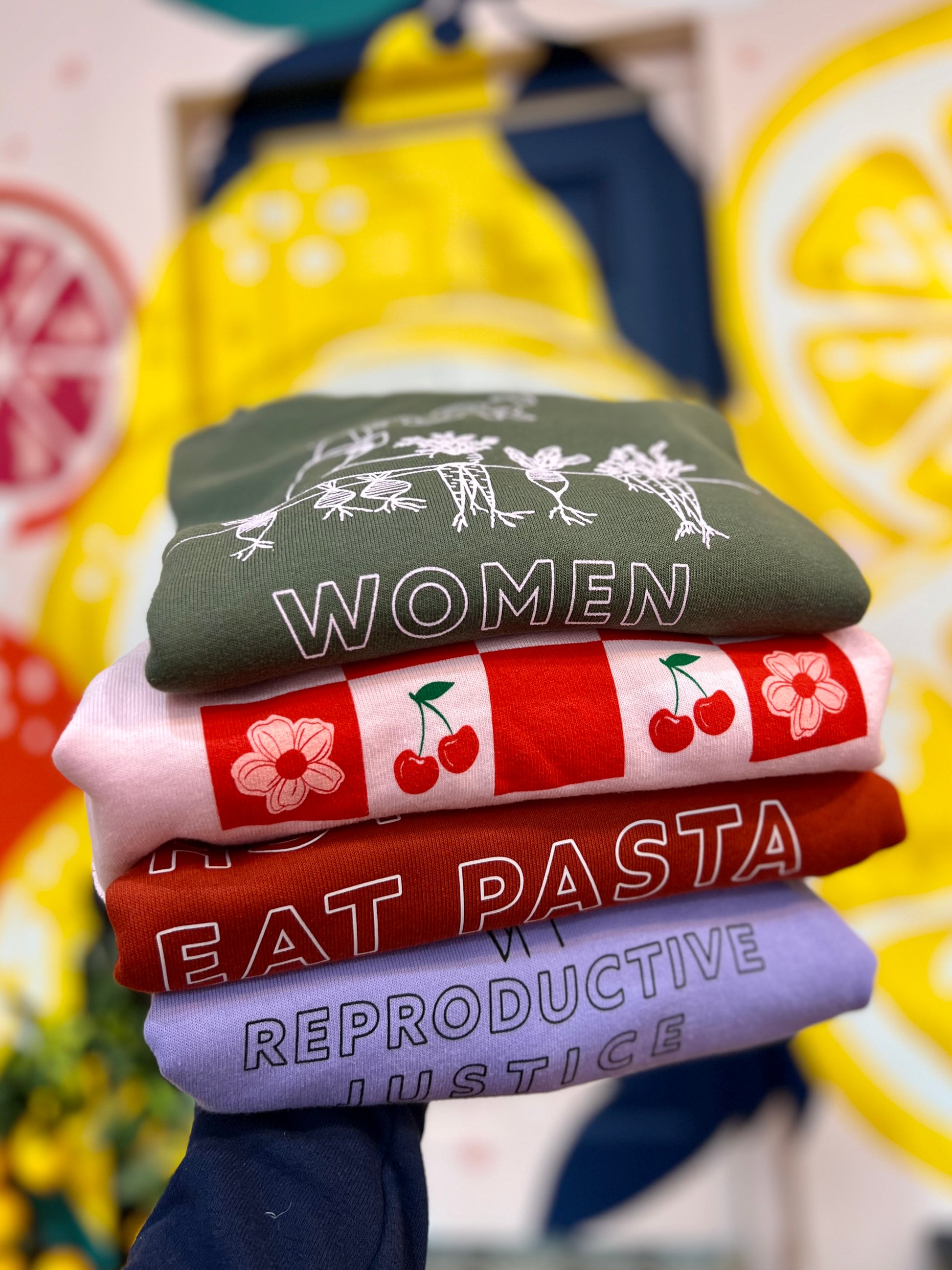 Keep cozy and support community farming in the Root for Women crewneck. Come in a sage green, brick red or natural color, in Unisex sizes. 5% of sales go to Soul Fire Farm, a BIPOC- centered community farm in upstate New York committed to ending racism and injustice in the food system.